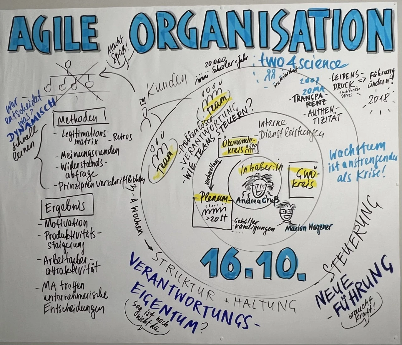 so das Fazit von Andrea Gruß im Zoom-Talk am 16.10.2023 über die Einführung, Vertriefung und Skalierung von Selbstorganisation in ihrem Unternehmen two4science.