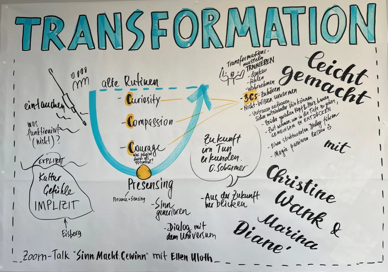 Diese Fragen haben wir zusammen mit Christine Wank im Zoom-Talk am 12.02.2024 erkundet - wieder frisch von Marina Diané moderiert und per Sketch-Note dokumentiert.